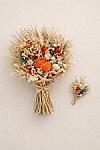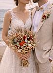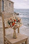 Buketin sıcak toprak tonları ve doğal yeşillikleri, beyaz çiçeklerin ferah görünümüyle dengelenirken; deniz kabuğu detayları tasarıma farklı, özgün ve tematik bir hava kazandırır. Hareketli yapısı sayesinde elde taşındığında oldukça estetik bir duruş sergileyen bu model, fotoğraf çekimlerinde de doğal, romantik ve sofistike bir etki yaratır. Klasik gelin buketlerinden farklı olarak daha özgün bir stil sunan bu tasarım, konsept düğünlerde unutulmaz bir tamamlayıcı olur.
