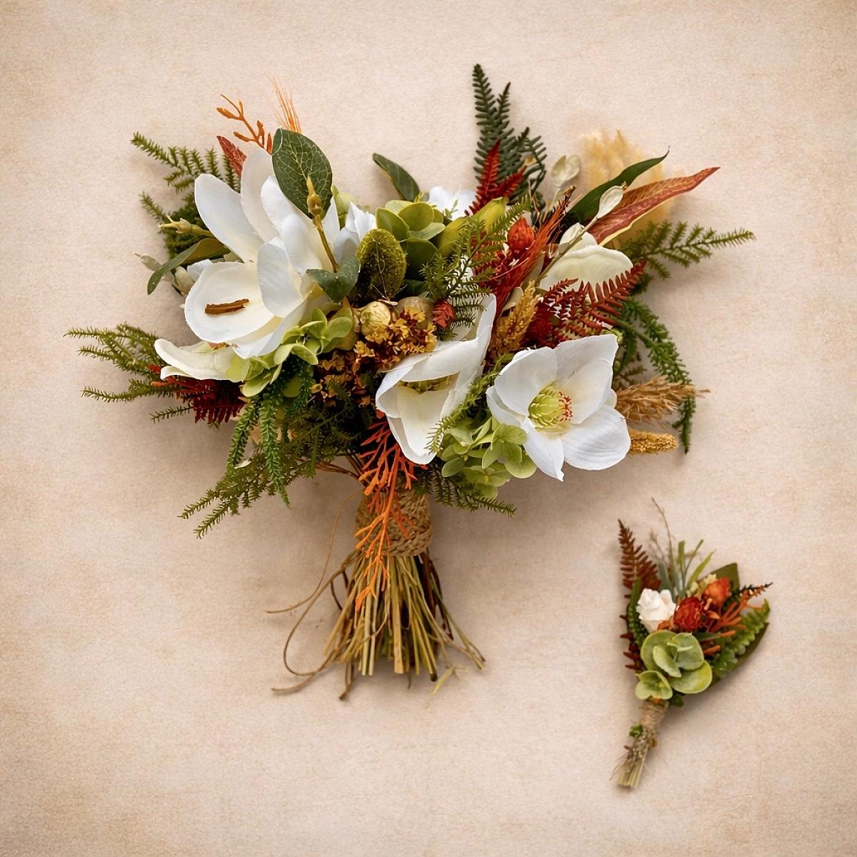 Klasik gelin buketlerinden farklı olarak daha doğal ve özgür bir form sunan bu model, özellikle bohem, rustik, kır düğünü ve açık hava konseptleri için oldukça uyumlu bir seçimdir. Elde taşındığında güçlü ama zarif bir duruş sergileyen buket, fotoğraf çekimlerinde de son derece estetik ve dikkat çekici bir görünüm oluşturur. Manolyanın gösterişli yapısı sayesinde sade gelinliklerle güçlü bir bütünlük sağlarken, daha detaylı tasarımlarla da şık bir uyum yakalar.